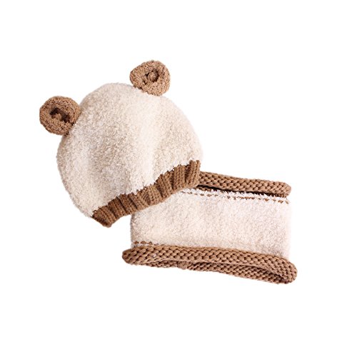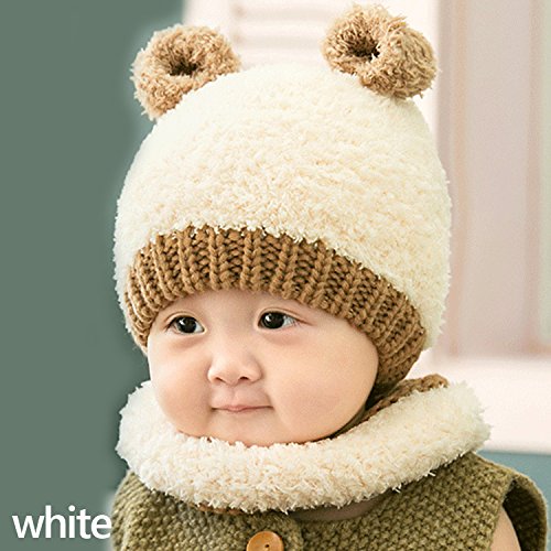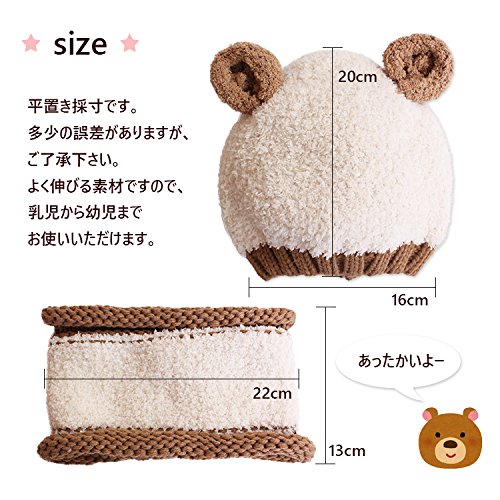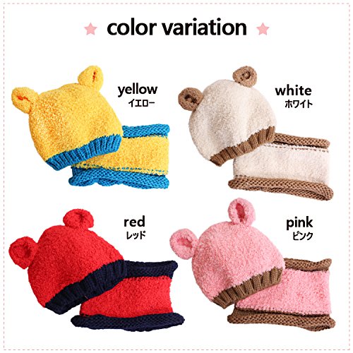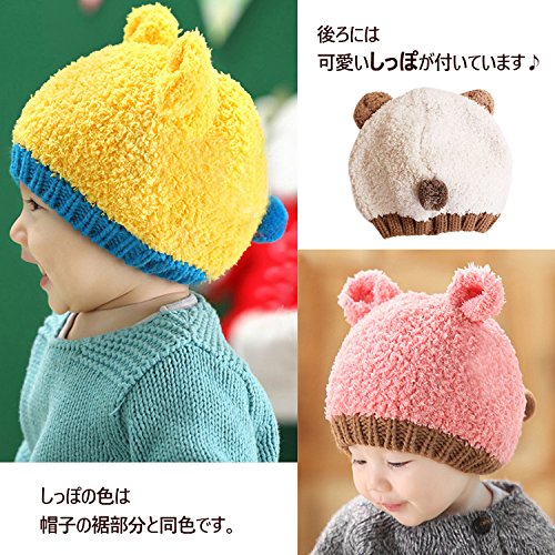 クマさんニット帽 クマ 耳付き キッズ ニット帽 かわいい 子ども 帽子 カラフル 4color ざっくり編み 可愛い プレゼント ベビー キャップ 冬 防寒 暖かい ボアファー (ホワイト)