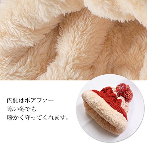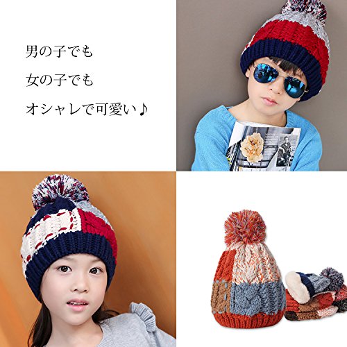 キッズニット帽子 キッズ ニット帽 かわいい 子ども 帽子 カラフル 4color ざっくり編み 可愛い プレゼント ベビー キャップ 冬 防寒 暖かい ボアファー (オレンジ)