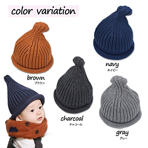 キッズニット帽 とんがりニット帽 あったかニット帽 子ども帽子 ベビー帽子 キッズ帽子 新生児帽子 ベビー かわいい とんがり 帽子 ニット帽子 韓国子供服 赤ちゃん 帽子 キッズ 赤ちゃん ヘアバンド リブ編み 4色 (チャコール)