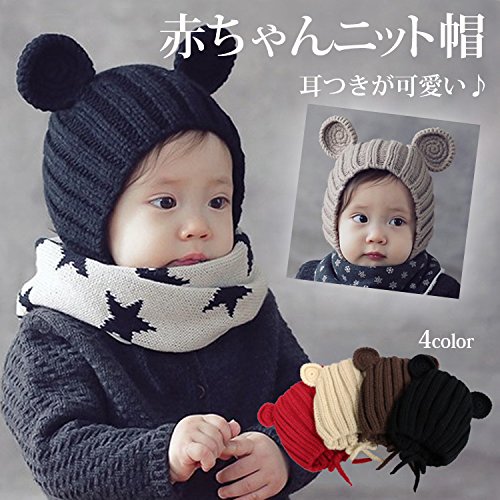 - ちょこんと付いたお耳が可愛い赤ちゃんニット帽。