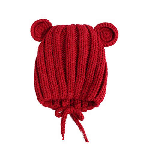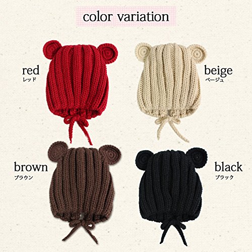 耳付き赤ちゃんニット帽 ベビーニット帽 キッズニット帽 あったかニット帽 子ども帽子 ベビー帽子 キッズ帽子 新生児帽子 ベビー かわいい ニット帽子【韓国子供服】赤ちゃん 帽子 キッズ リブ編み 耳付き 4color (レッド)