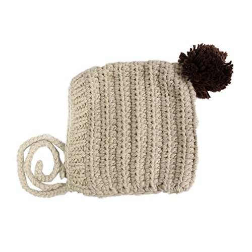 ベビーニット帽 キッズ ベビー 赤ちゃん帽子 赤ちゃん 子ども ニット ニット帽 ポンポン付き ぽんぽん 手編み風 ざっくり編み 毛糸 耳まですっぽり 暖かい ポカポカ 秋冬 防寒 紐付き 7color (ベージュ)