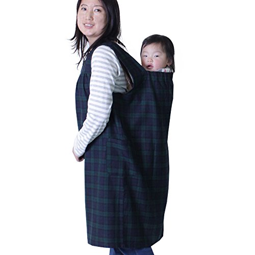 ママチュニック ママワンピース ママエプロン マタニティ マタニティウェア 産前産後 授乳服 おんぶ 抱っこ バッテンおんぶ紐隠れます (ブラックウォッチ)