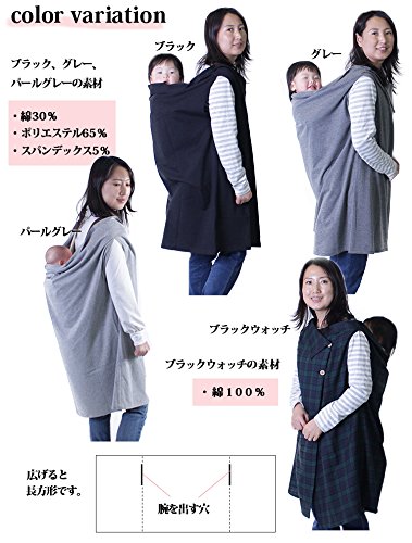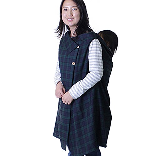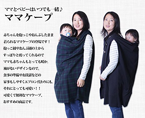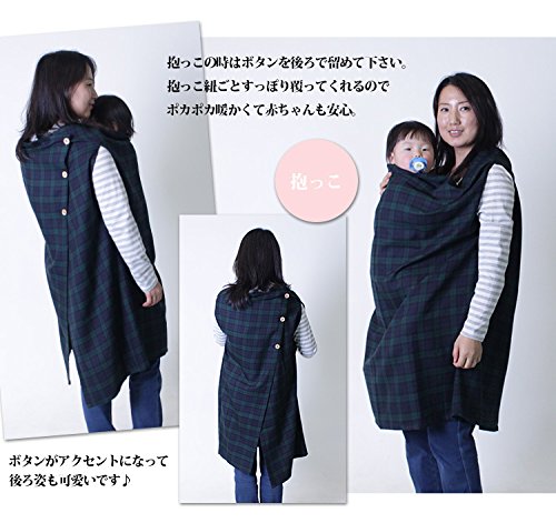 ママケープ ママチュニック ママワンピース ママエプロン マタニティ バッテンおんぶ紐隠れます (ブラックウォッチ)