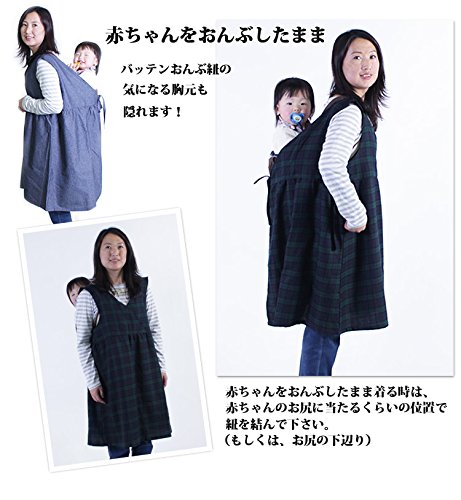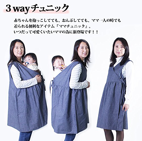 ママチュニック ママワンピース ママエプロン マタニティ マタニティウェア 産前産後 授乳服 おんぶ 抱っこ バッテンおんぶ紐も隠れます (ダンガリー)