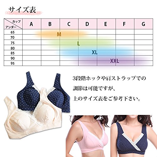 マタニティ ブラジャー ヨガ エクササイズ ナイトブラ ストレッチレース付きやわらか授乳ブラジャ 授乳服 授乳用ブラジャー 妊婦 産後 矯正下着 ノンワイヤー (XXL, ネイビードット)