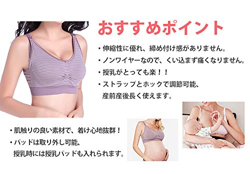 マタニティブラジャー (XL, パープルボーダー)