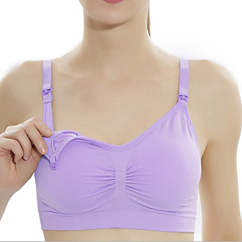 マタニティブラジャー マタニティブラ マタニティ 授乳ブラ 授乳用 妊娠 マタニティインナー 下着 (M, パープル)