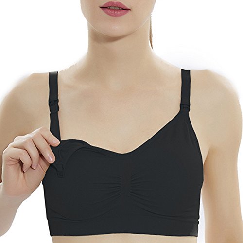マタニティブラジャー マタニティブラ マタニティ 授乳ブラ 授乳用 妊娠 マタニティインナー 下着 (L, ブラック)