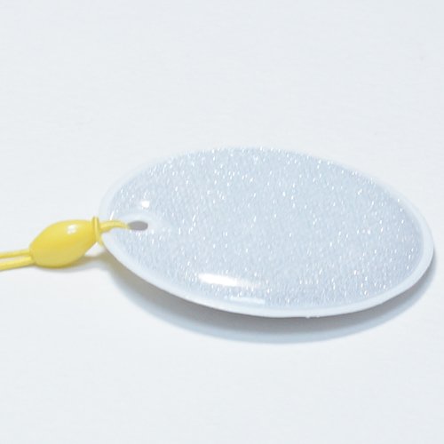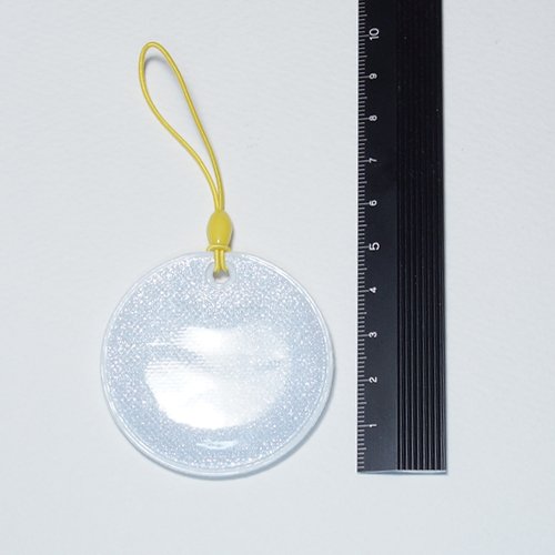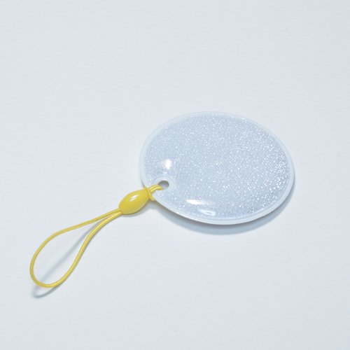 車のヘッドライトに反射するリフレクター(反射シートタグラメ入り)です。カバンやバッグ、傘に付けることにより目印として利用できます。