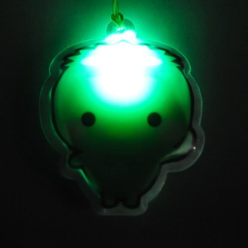 - 頭のお皿の部分1箇所にLEDが内蔵されていて、「PUSH」(シール)を押すとLEDがランダムに光ります。