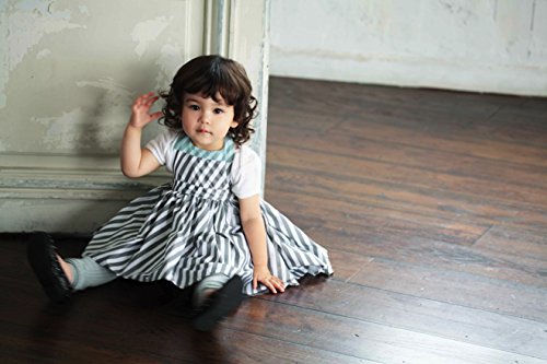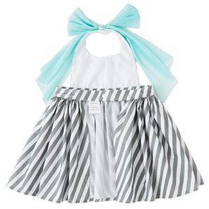 ドレスのようなお食事エプロンに、プリントシリーズが登場。グラフィカルなグレーとホワイトのスラッシュストライプが目をひく、コーディネイトの主役になる一枚。たっぷりギャザーでふんわり広がり、スイートな印象に。首元のリボンで後ろ姿もかわいく。お食事タイムを快適に過ごせる、やわらかく通気性の高い撥水生地。ドレスアップした特別な日にも普段づかいにも、マルチに活躍します。