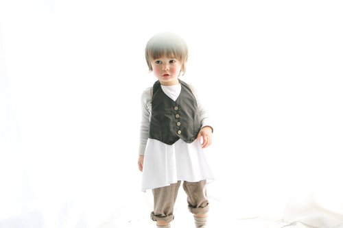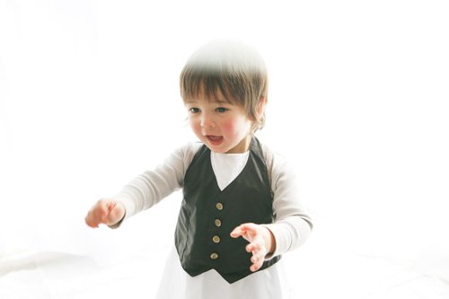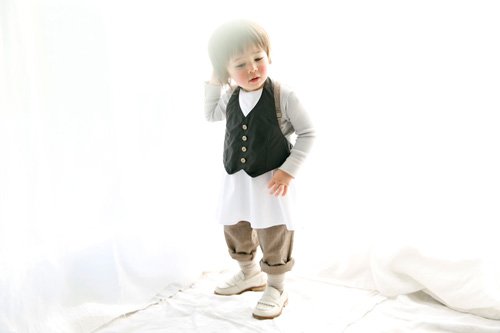 マールマールから、お食事エプロンが登場。ギャルソンボーイをイメージした重ね着風のデザインは、普段使いはもちろん、パーティなどのフォーマルな場面でもご使用いただけます。透湿性と防水性を兼ね備えた、高機能な生地を使用しているので、お食事タイムをめいっぱい楽しんでいただけます。白いシャツ部分も同じ素材なので、汚れにくく取り扱いも簡単です。出産祝いだけでなく、1歳のお誕生日にも喜ばれますね。