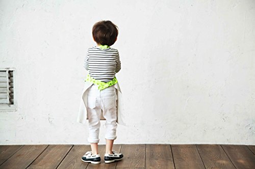 - [本体サイズ]100-110サイズ:着丈51cm 首回り約28cm~30cm ※つたいもれ防止のため、一般的なエプロンよりも、首回りが小さめのつくりになっています。/ 梱包時:幅22.5x高さ12.5x奥行4cm