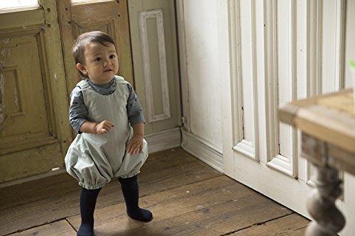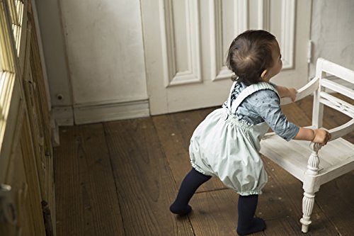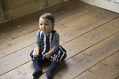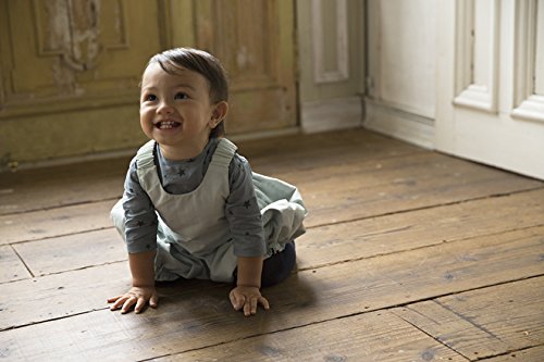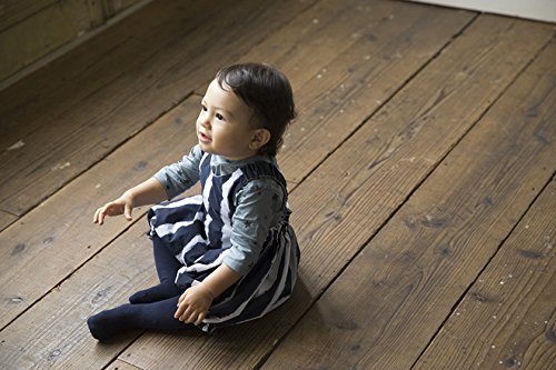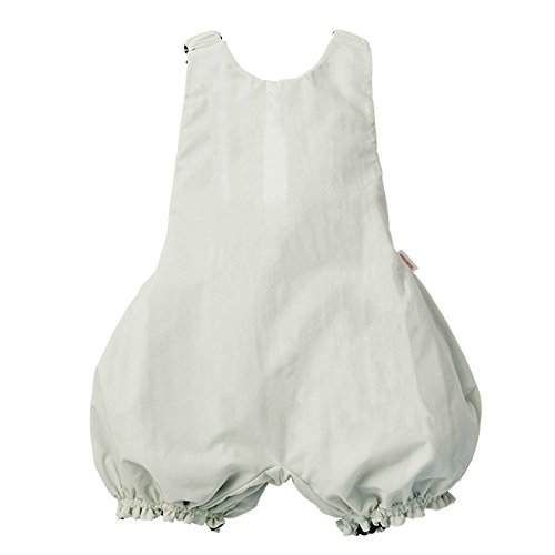お洋服としても使える、新素材を使ったお食事エプロン。 表は淡いカラーの単色、裏は子どもたちがらくがきしたような手描きのネイビーストライプ柄。印象ががらりと変わってたのしい、2WAYタイプです。 コットンのような質感でありながら、撥水・撥油の機能に優れたナイロン素材。ふっくらボリュームのおしりがかわいいオーバーオール型、ユニセックスなデザインです。 エプロンとしてはもちろん、汚れにくい日常着としても使っていただけます。ワンサイズ(70~80cm)のみ。 クロスしたバックストラップは、3段階のボタン留め仕様。サイズ調整が可能です。履き口だけでなく、この部分も伸縮自在。ボタンを外さずとも、着脱できます。