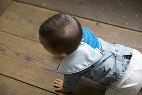 スウィートなカラーリングが目を引くソルベシリーズは、マールマール初めてのリバーシブル仕様のスタイです。 濃淡のブルーがさわやかな表地と、ピンクとのコントラストがポップな裏地、どちらも使えます。360度どの向きでもかわいく、2WAYであるという以上に見え方の変化を楽しめる一枚です。 吸水速乾の機能を持つ、ふわふわとした手触りがたまらないパイル素材の表地。間に撥水生地をはさんだ3枚仕立てで、キュートな見た目ながらお洋服を汚れから守ります。