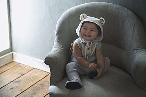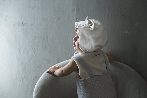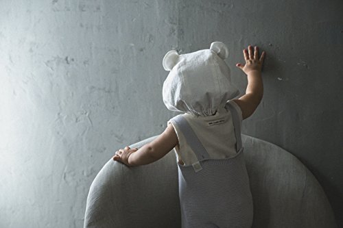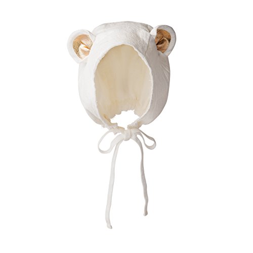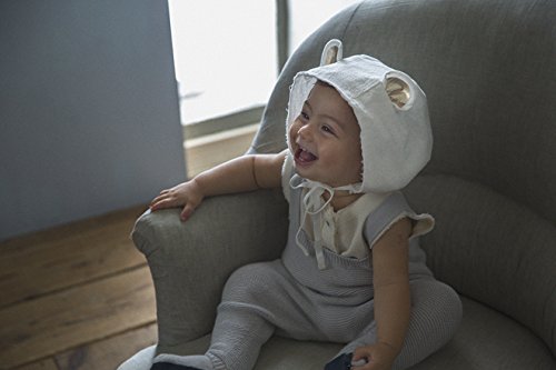 まるくて小さな耳がちょこんとついた、さりげなくかぶれるボンネ型のクマの帽子です。 ベビーの愛らしさを引き立てるモチーフを、切りっぱなしの生地使いで仕上げました。 耳の内側にゴールドの箔プリントを配したホワイトカラーの帽子は、おしゃれを洗練させるアクセントとしても大活躍間違いなし。 顎の下で結ぶリボンゴムは、そのまま無理なく着脱できて、ママの負担を軽減してくれます。