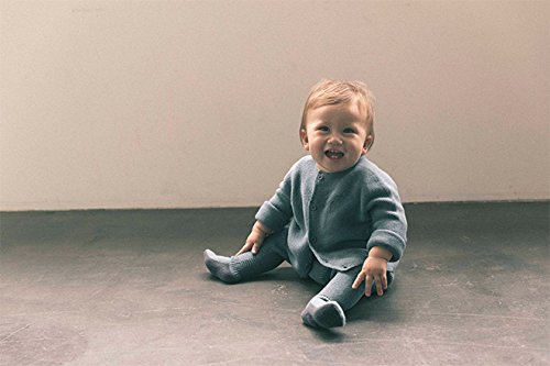 「第二の肌」と呼ばれ、身体の動きを妨げる縫い目のないホールガーメント製法で作った日本製のニットパンツです。 ねんねからハイハイ時期の赤ちゃんの、M字型に開きがちな脚を包み込む立体成型のハイウェストデザインで、ストレスフリーの極上な着心地を実現。肩ストラップのボタンで、サイズ調整も可能です。 気付かず脱げてしまいがちな靴下が不要で、ママのストレスも軽減。 合わせやすいニュアンスカラーで、単品使いはもちろん、お揃いのカーディガンとコーディネートすれば、ベビー期ならではの愛らしいスタイリングが完成します。