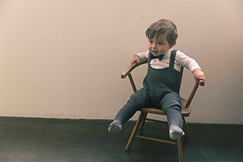 M字型に開きがちな赤ちゃんの体型に沿うカーヴィーなシルエットを、縫い目のない"ホールガーメント製法"で実現した、 着心地抜群の日本製ニットパンツです。 ボタンのかけ替えで肩ストラップの長さを2段階に調整でき、70~80cm前後のねんねからハイハイ時期に重宝します。 日本の伝統色をイメージした"スミ"×足裏のライトグレーのコントラストがコーデのアクセントに。 同色カーディガンとBodysuits1を合わせれば、結婚式などのオケージョンにも対応できる、シンプルシックなスタイルが完成します。