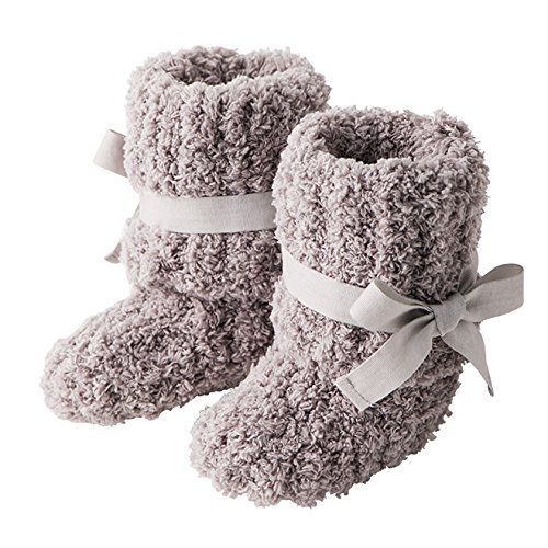 やわらかな上質素材がベビーの足をかわいく包む、歩きはじめる前のベビー向けニットブーティ。 ハイハイのときやお出かけ先で脱げないように、しっかり結べるリボンストラップ付きで、おしゃれと実用性を兼ねたデザインに。 赤ちゃんの足をかわいく快適にホールドします。 ベビーアイテムには珍しいメロウな色のブーティは、合わせやすく、おしゃれ感度の高いチャコールカラー。 同色のブランケットと合わせれば、ママとのリンクコーデも叶います。