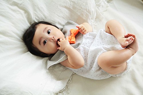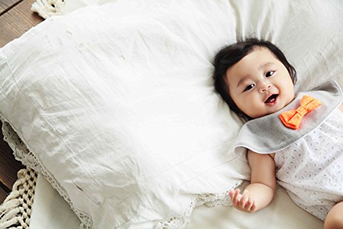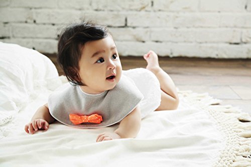 キッチュなカラーを差し色にした、ポップなジュジュシリーズ。取り外し可能なリボンタイは、元気いっぱいのネオンオレンジ。ハッピーな雰囲気で、男女を問わず使えるデザインです。肌触りのよいパイル素材のベース生地は、吸水性も抜群。よだれや水分からお洋服をしっかり守ります。出産祝いやハーフバースデーのお祝いにおすすめです。