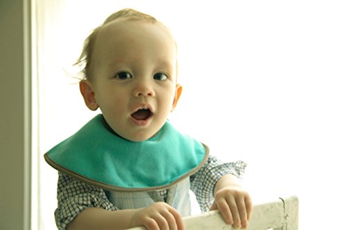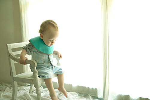 マカロンカラーで組み合わせた、男の子らしい色合わせのスタイです。シンプルなデザインですが、明るいブルーがコーディネートのアクセントにもなりますね。まあるい形なので、元気なお子様のよだれもしっかりキャッチしますパイル生地を間に挟み、吸水性も抜群です。