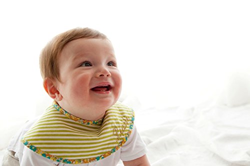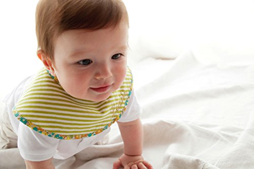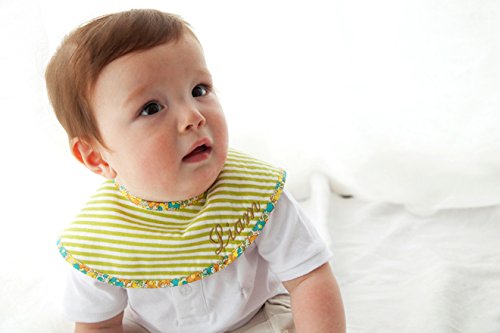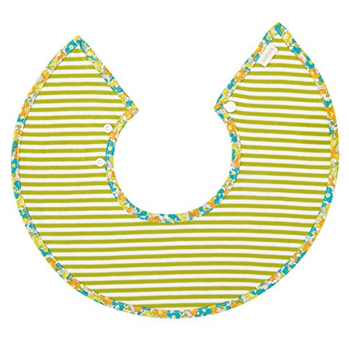 マルシェのにぎやかさをイメージしたポップなスタイです。花柄×ボーダーはイエローやブルーなどの色を使い、男の子でも合わせやすいデザインに仕上げています。生地が2枚仕立てなので吸水性だけでなく速乾性も兼ね揃えています。ドーナツのようなまあるい形は、よだれをしっかりキャッチします。よだれの多いお子様も安心ですね。