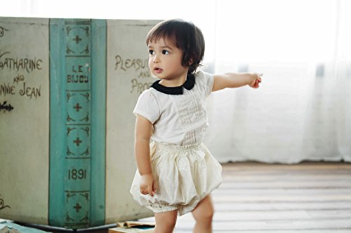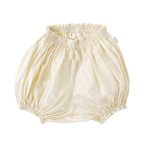 元気に動きまわる赤ちゃんにぴったりのブルマ。花のつぼみのように、まあるいフォルムがポイントです。はくだけで、かわいいルックスに早変わり。品のよいゴールドのラメ入りで、シックな装いにぴったり。落ち着いた色合いなので、フォーマルなコーディネイトの邪魔をしません。赤ちゃんのおなかを守り、見た目も上品に仕上げてくれます。ねんねベビーから3歳くらいのキッズまで、長く使える一枚。