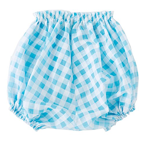 おすわりやはいはいと活発なベビーにぴったりのブルマが完成。ふんわりとまあるいフォルムが特長です。透け感がかわいいブルーのギンガムチェックで、シンプルなロンパースに合わせるだけでコーディネイトが完成します。ウエストのフリンジもポイントに。赤ちゃんのおなかやおしりを、かわいく守ります。肌触りのよい薄手生地で、汗かきな赤ちゃんにおすすめ。お誕生日などのギフトにもどうぞ。(モデル:1歳1か月、71cm)