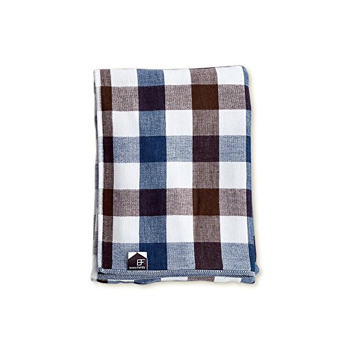 EF 綿100%のマルチガーゼケット(表ガーゼ・裏パイル Sサイズ(子供用)100x140cm ハーフサイズ)タータンチェック・ネイビー #29015