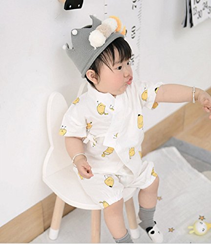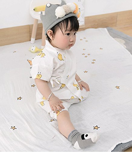 SARIA 新発売 ベビー服 肌着 柔らかい浴衣 和尚服 ロンパース 和装フォーマル 上下セット カバーオール 赤ちゃん 新生児 服 (73#, 半袖ホワイト)