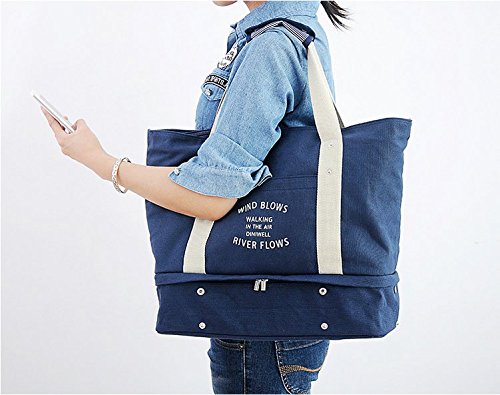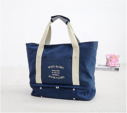 DINIWELL 多機能旅行収納バッグ マザーズバッグ 大容量シューズインバッグ キャンバストートバッグ (ネイビー)