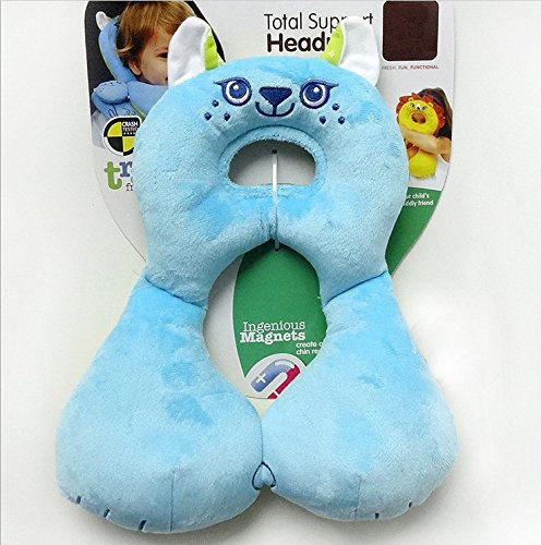 MOMO ベビーネックピロー トータルセポーター ヘッドレスク 可愛い動物 寝具 首枕 ヘッドレスト 頭保護 車 ベビーカー チャイルドシート用 手洗い可 (ブルー猫)