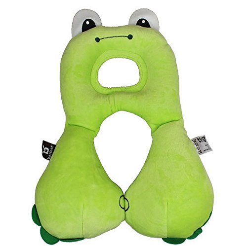 MOMO ベビーネックピロー トータルセポーター ヘッドレスク 可愛い動物 寝具 首枕 ヘッドレスト 頭保護 車 ベビーカー チャイルドシート用 手洗い可 (カエル)
