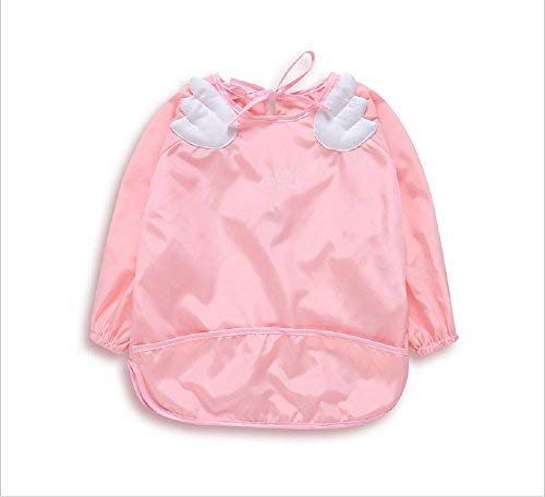 MOMO ベビー 長袖 エプロン 子供 幼児 天使の翼スモック タイプ 食事用 洗濯機でも洗える お食事用防水ビブ キャッチポケット付き キッズ 子供用 男女兼用【4色可選】 (100cm(2~3歳推薦), ピンク)