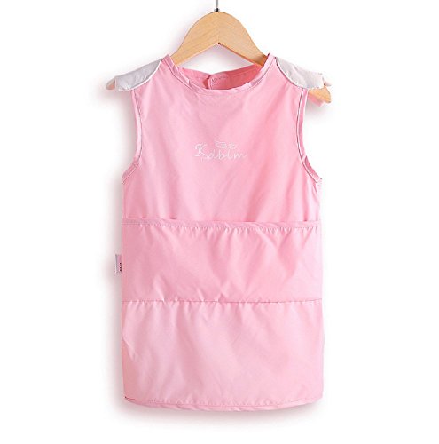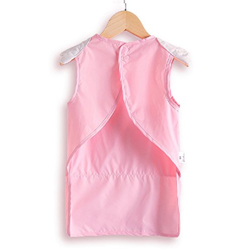 MOMO ベビーノースリーブ エプロン 子供 幼児 天使の翼スモック タイプ 食事用 洗濯機でも洗える お食事用防水ビブ キャッチポケット付き キッズ 子供用 男女兼用【5色可選】 (110cm(3~5歳推薦), ピンク)