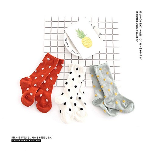 MOMO 可愛い女の子 水玉 ドットロングソックス 靴下 美脚 無地 通学 通勤 子ども キッズ ガールズ 春秋 全3色【赤緑白3足セット入り】