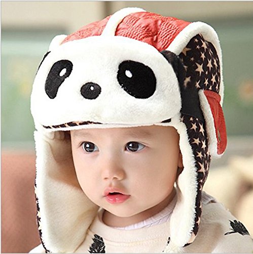 ORANGE(オレージ)可愛いパンダ マスク 一体型 耳あて 帽子 女の子 男の子 秋 冬キッズ こども 男女兼用 (赤い)