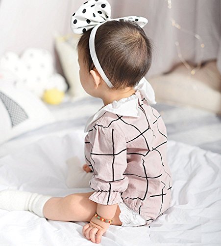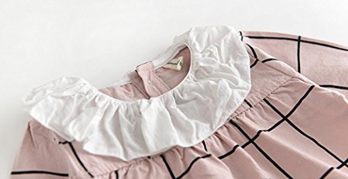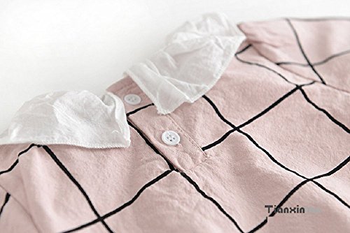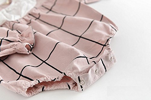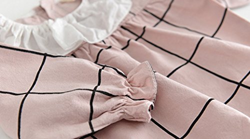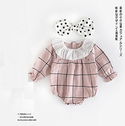 SARIA 春最新発売 可愛い女の子用 キクラゲ首襟 チェック柄 長袖ロンパース 新生児 服 肌着 柔らかいカバーオール 子供 キッズ (90#, ピンク)