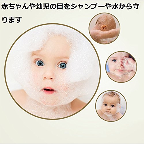 - シャンプー液や、すすぎ湯が目や耳に入るのを防ぎます。頭のサイズに合わせて使用できます。