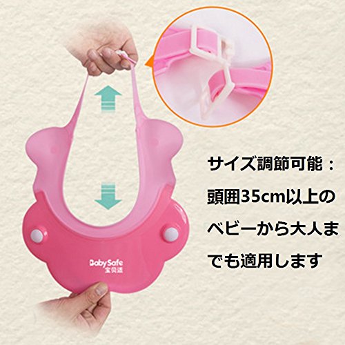 - シャンプー液や、すすぎ湯が目や耳に入るのを防ぎます。頭のサイズに合わせて使用できます。