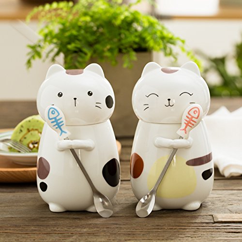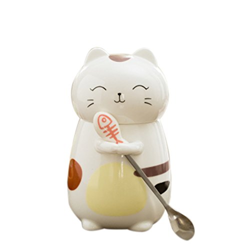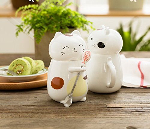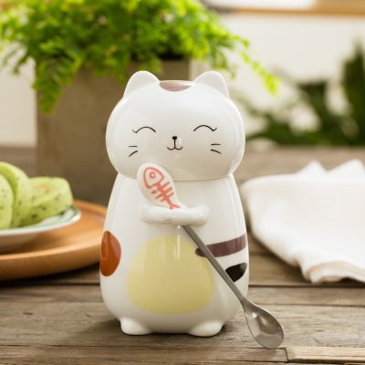 桜の雪 かわいい 猫ちゃん キャラカップ 蓋 杓子付き コーヒー杯 お茶のカップ マグコップ 飾り物 プレゼント (イエロー)