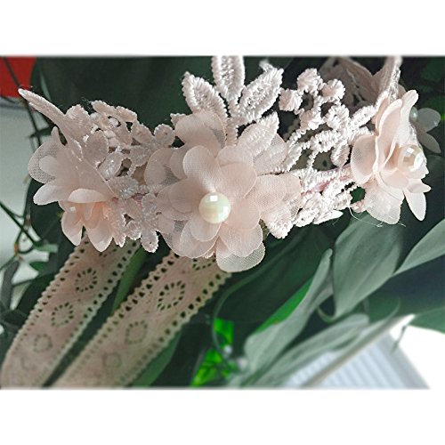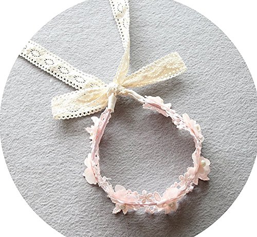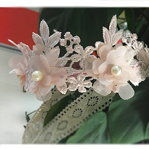 桜の雪 韓国風 女の子 可愛い おしゃれ 花びら レース リボン ヘッドドレス (ピンク)