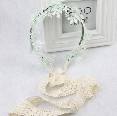 桜の雪 韓国風 女の子 可愛い おしゃれ 花びら レース リボン ヘッドドレス (グリーン)