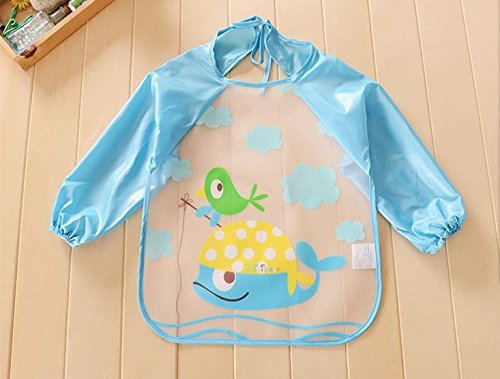 - 汚しやすい袖部分を手首までカバーする長袖タイプです。子供の食べ汚し、お絵描き中の汚れ防止やちょっとした水遊びの時ように役に立って良かったです。