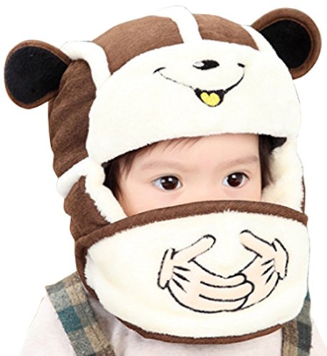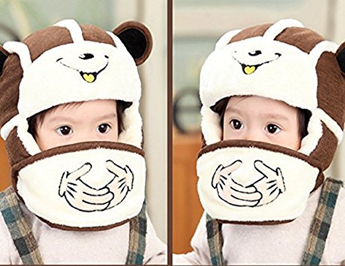 桜の雪 ベビー帽子 マスク 二点セット 男の子 女の子 パイロット帽子 秋冬 キャップ 飛行帽 裏起毛 (5-12ヶ月)