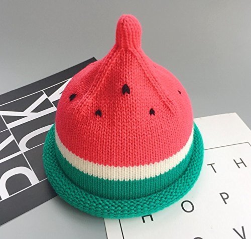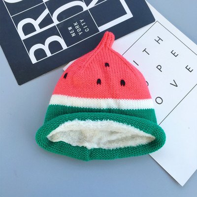 桜の雪 かわいい 赤ちゃん 子供 スイカ 秋冬 加絨 保温 防寒 ニット 帽子 (赤い)