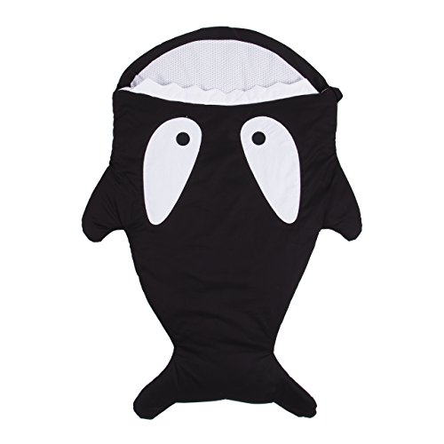 シュラフ ベビー おくるみ サメの形 寝袋 ブランケット 暖かい 赤ちゃん対応 柔らかい肌触り (黒)