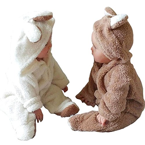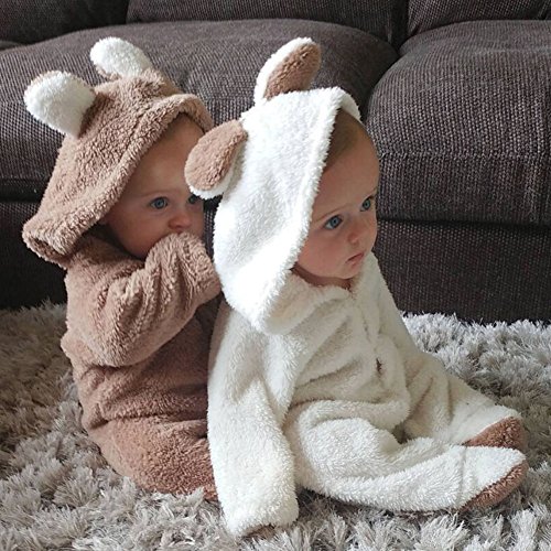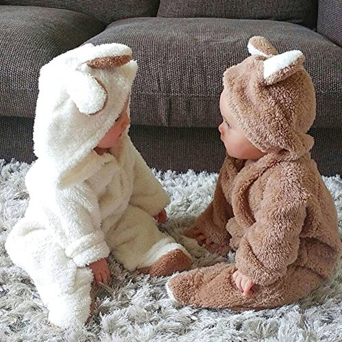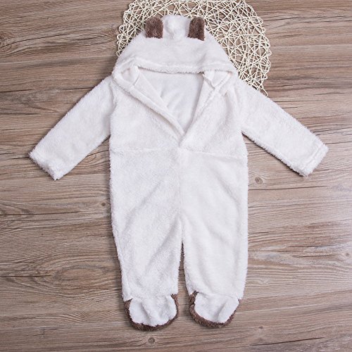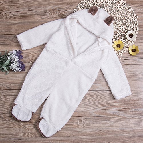 ベビー 子供服 長袖 ロンパース 可愛い ふわふわ 熊着ぐるみ 萌え 新生児 赤ちゃん服 超柔らかい フード付き キッズ洋服 秋冬 防寒着 出産祝い 女の子 男の子 (80, ホワイト)