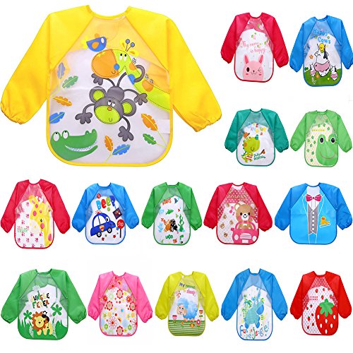ベビー お食事エプロン 長袖 防水 赤ちゃんよだれかけ 授乳ビブ かわいい漫画 水洗い簡単 出産祝い プレゼント 16色 (#15)
